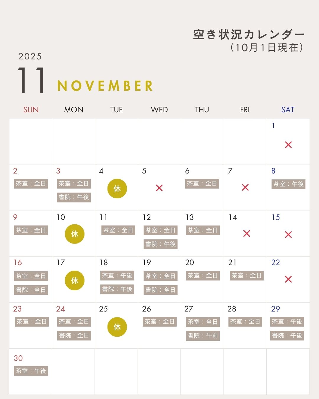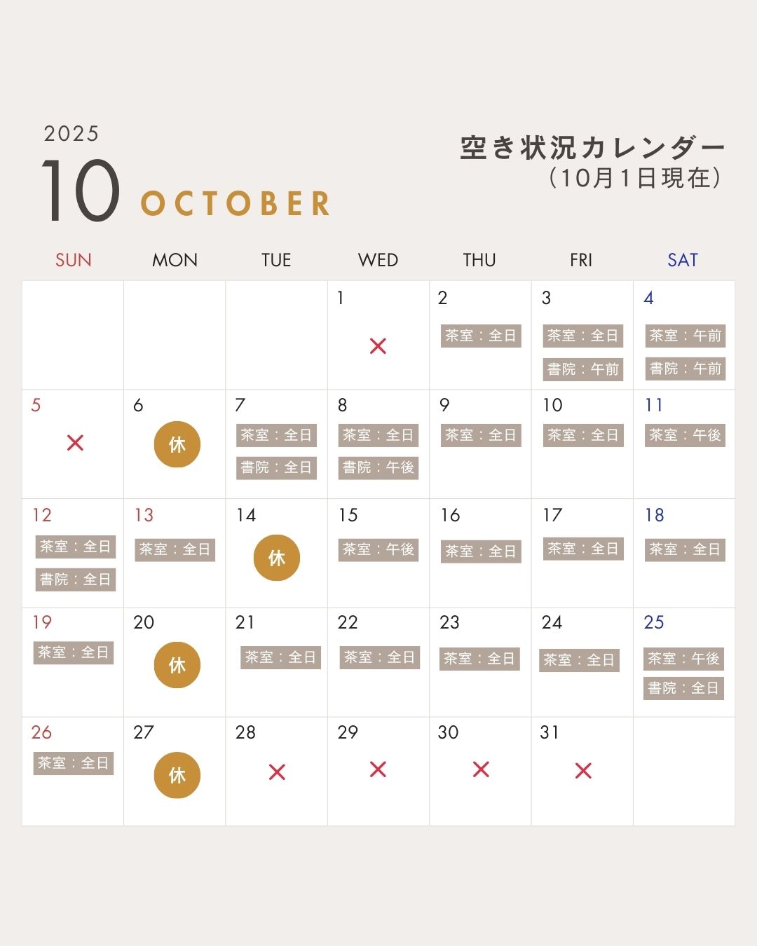 ※ 月別の更新日現在(R7年10月1日)の空き状況です。