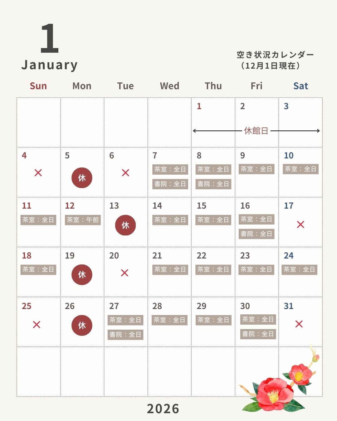 令和8年 1月 →空き状況カレンダー